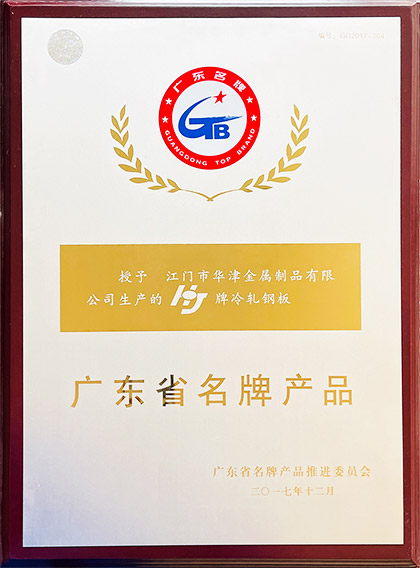 授予 江門市華津金屬制品有限公司 生產(chǎn)的HJ牌冷軋鋼板
