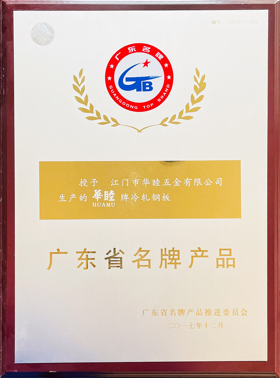 冷軋鋼板被認定為“2017年度廣東省名牌產(chǎn)品”