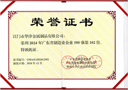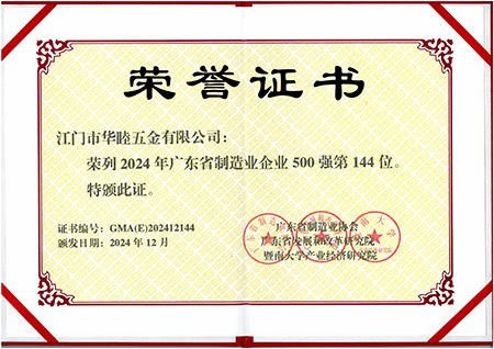 華津集團(tuán)旗下江門市華津金屬制品有限公司和江門市華睦五金有限公司憑借強(qiáng)大的實力和卓越的品質(zhì),榮登“2024年廣東省制造業(yè)500強(qiáng)企業(yè)”榜單。