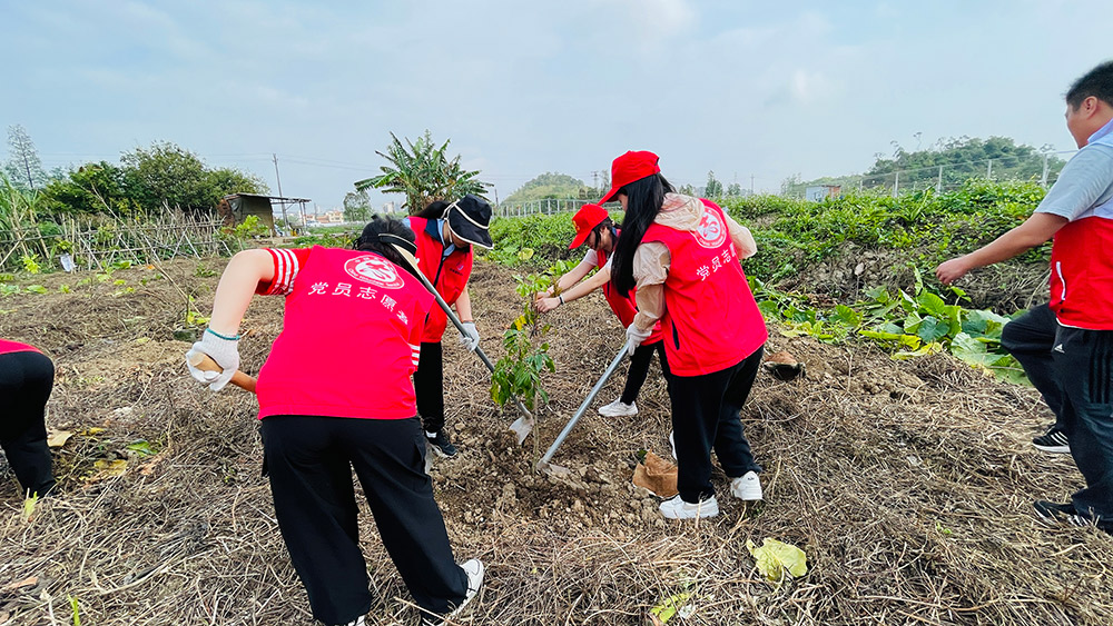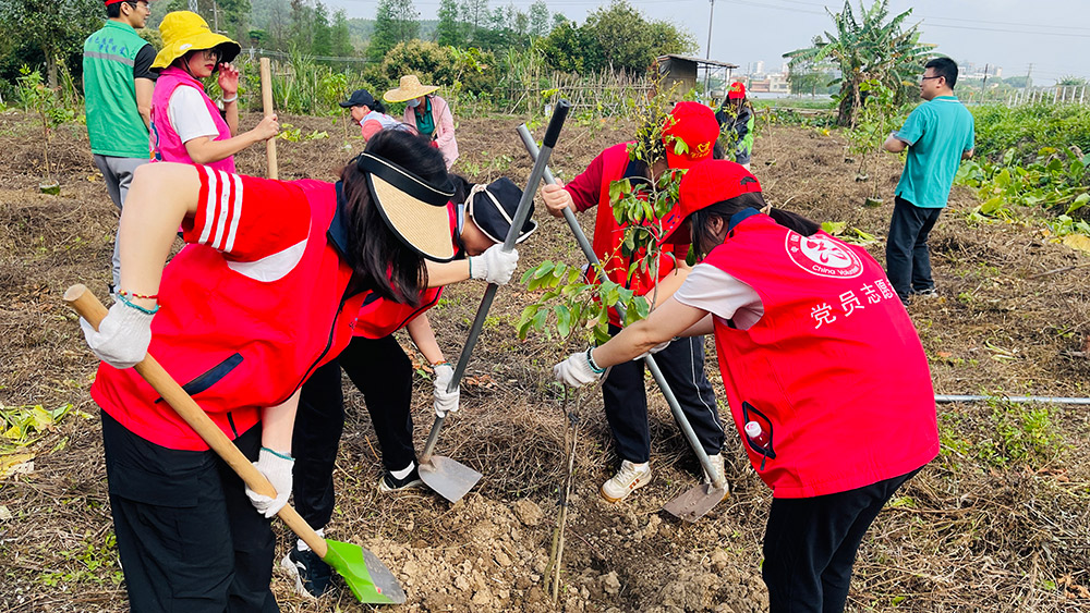活動現(xiàn)場,職工們熱情高漲、配合默契,有序完成揮鋤挖坑、扶苗培土、踩實澆水等工序。經(jīng)過共同努力,120株龍眼樹苗扎根沃土,為大地增添盎然生機(jī)。