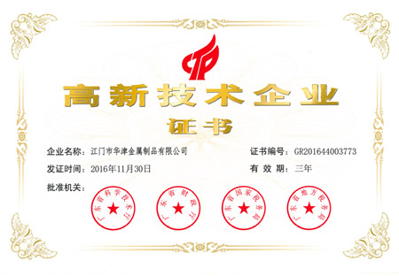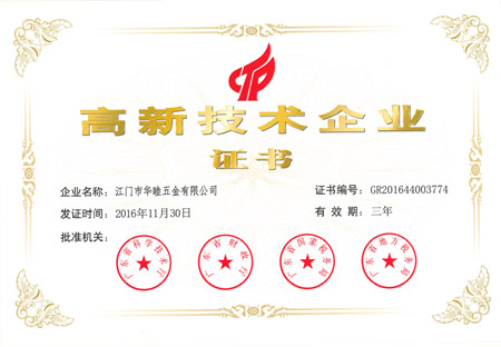 2016年11月30日,本公司之公司江門華津金屬制品有限公司(以下簡稱“華津”)及江門市華睦五金有限公司(以下簡稱“華睦”)分別收到由廣東省科學(xué)技術(shù)廳、廣東省財政廳、廣東省國家稅務(wù)局及廣東省地方稅務(wù)局共同批準(zhǔn)的《高新技術(shù)企業(yè)證書》(證書編號分別為:GR201644003773號及GR201644003774號)。